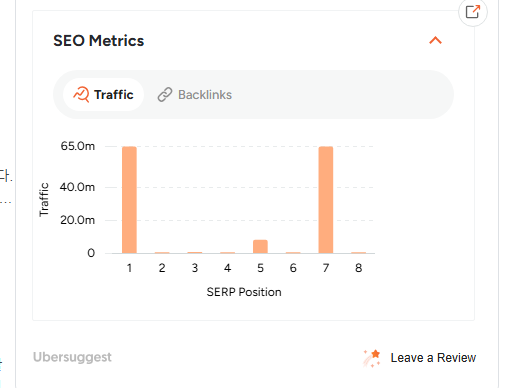 일반적으로는 1위가 가장 많은 클릭을 받지만, 이 키워드의 경우 7위도 특이하게 높은 트래픽을 보여주고 있어 주목할 만합니다.