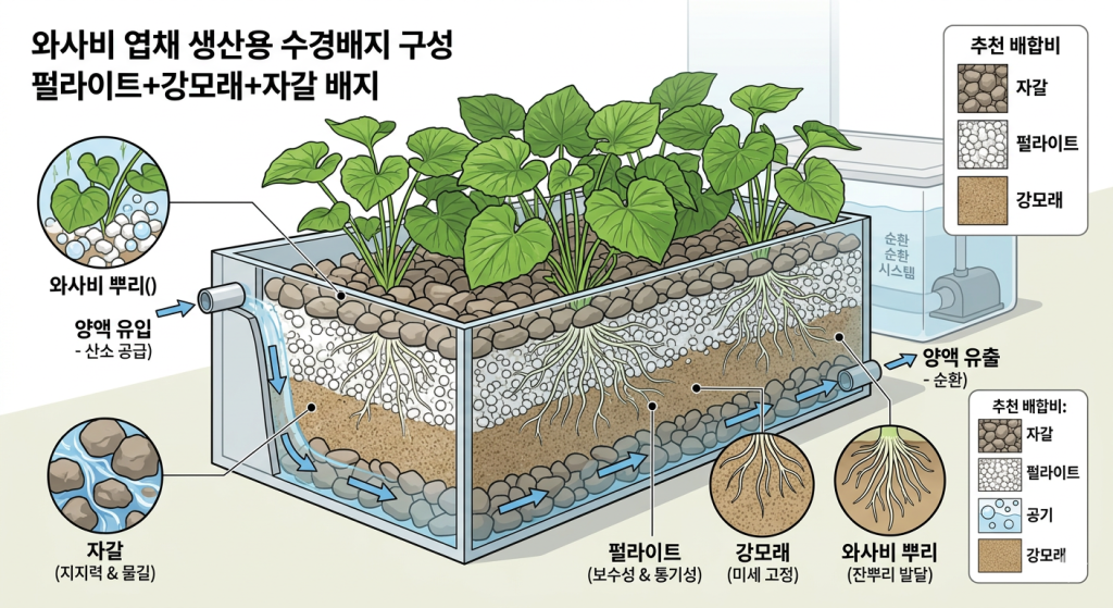 이 조합은 비용을 대폭 절감하면서도 와사비 전문 재배 단지에서 사용하는 혼합 배지와 유사한 효과를 낼 수 있는 아주 영리한 선택입니다.